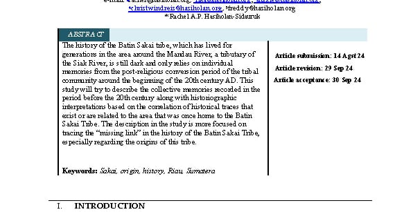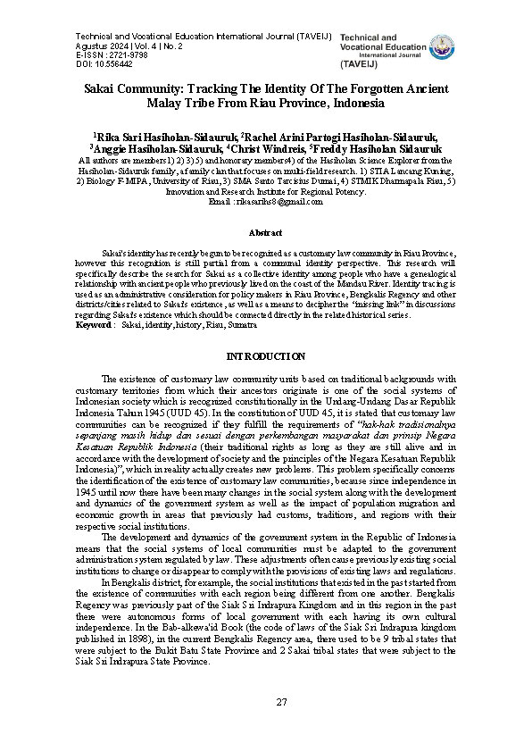 SAKAI COMMUNITY: TRACKING THE IDENTITY OF THE FORGOTTEN ANCIENT MALAY TRIBE FROM RIAU PROVINCE, INDONESIA