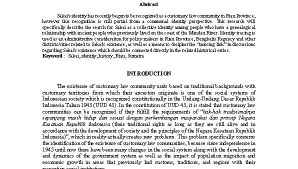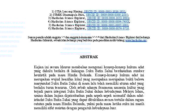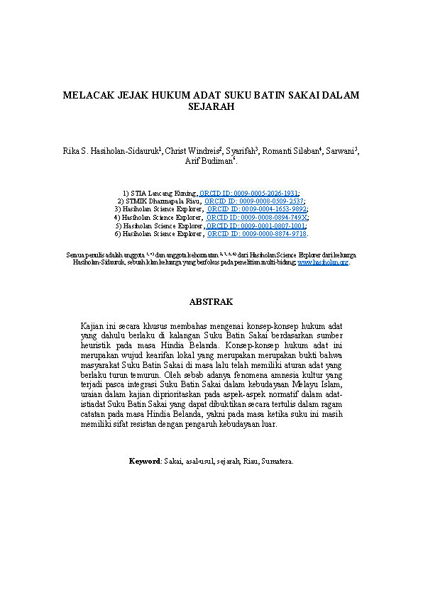 MELACAK JEJAK HUKUM ADAT SUKU BATIN SAKAI DALAM SEJARAH