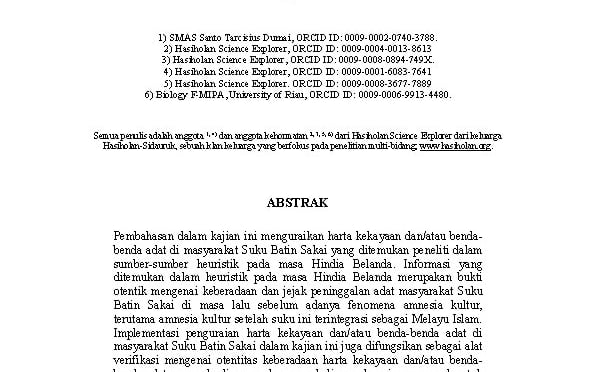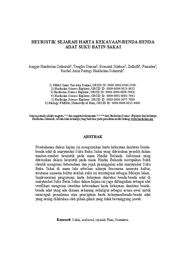 HEURISTIK SEJARAH HARTA KEKAYAAN/BENDA-BENDA ADAT SUKU BATIN SAKAI